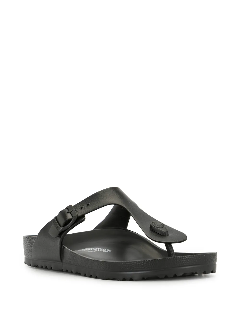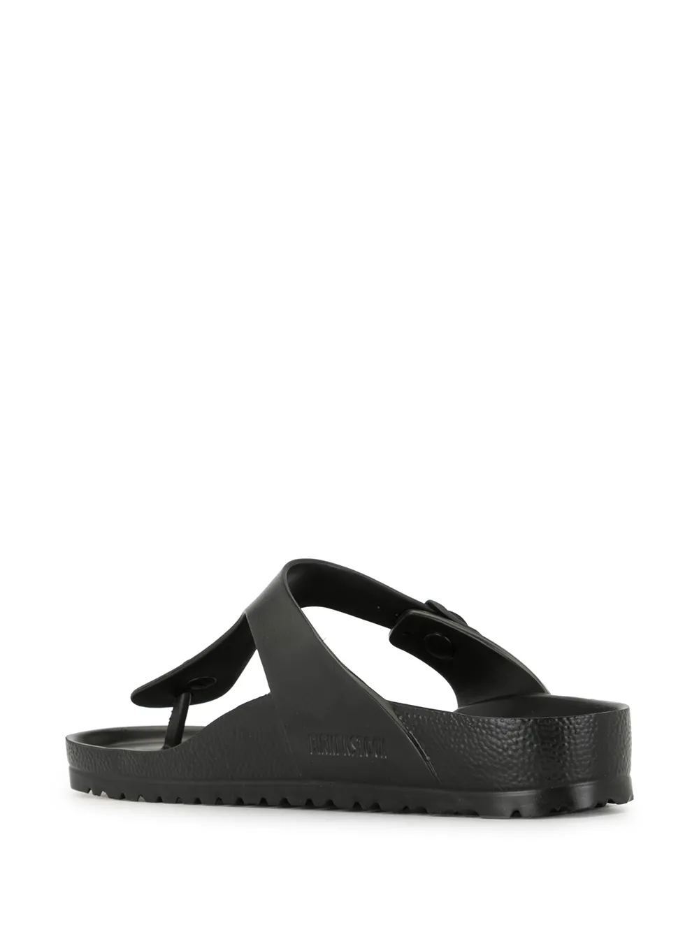 Black Gizeh Eva flat sandals from BIRKENSTOCK featuring open toe, slip-on style, branded insole and flat sole.